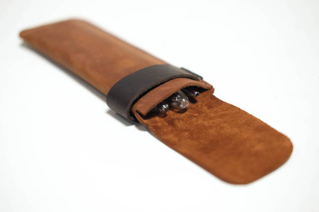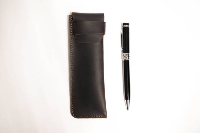 This stylish leather pen case is the perfect accessory for any desk. It's 6 cm wide and 18 cm tall, making it an ideal size for storing and protecting your favorite pens. Enjoy the convenience of having your writing supplies always in one place.