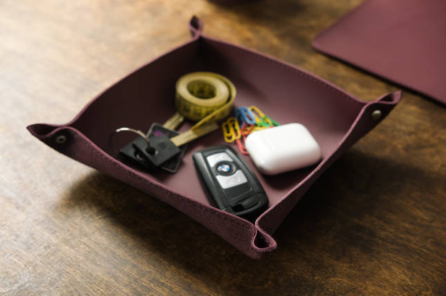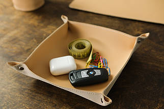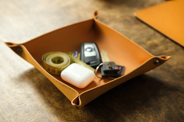 This stylish leather Soft Tidy Tray is perfectly designed for organizing keys and small items. Its dimensions are 4cm (height) by 19cm (width and length), creating a convenient and organized way to store items. Keep your home or office tidy and organized with this durable Soft Tidy Tray.