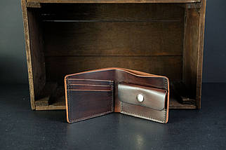 This practical and stylish wallet is crafted with genuine leather, providing durability and a luxurious look. It features a coin case with efficient button closure, bill compartment, and three slots for cards. Its dimensions of 11 cm by 9 cm make it perfectly compact - ideal for convenience and portability.